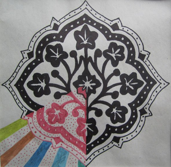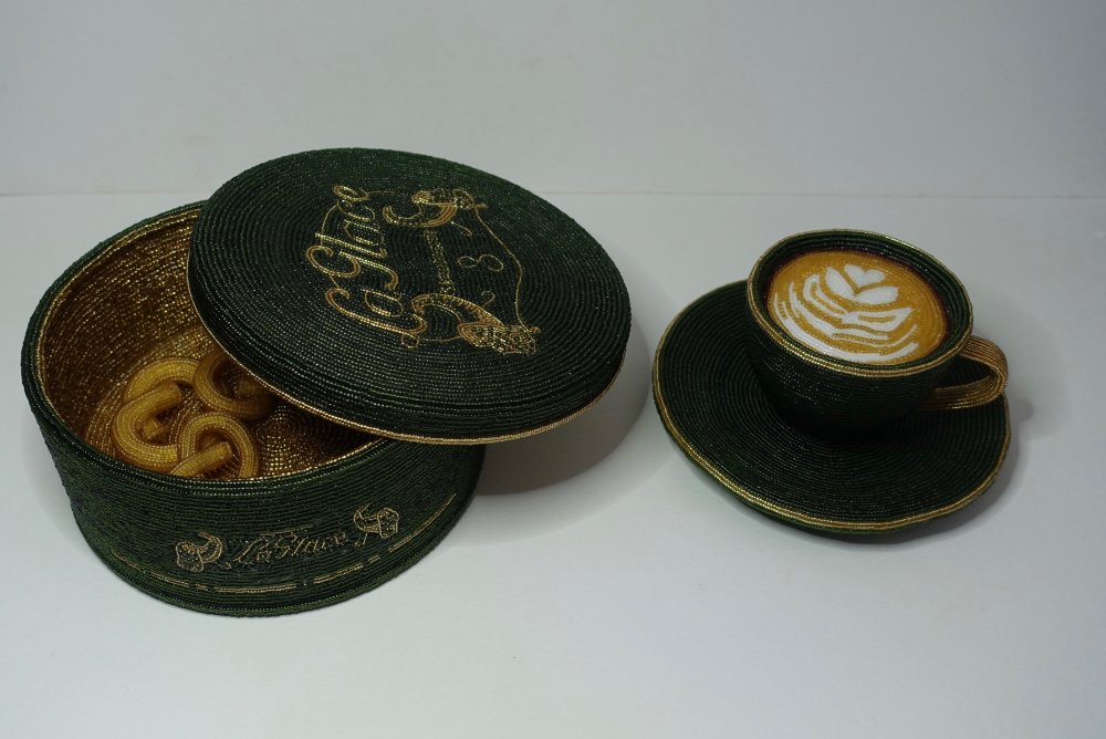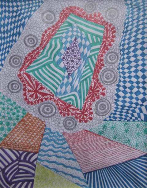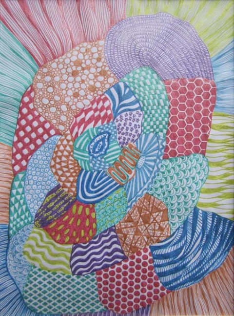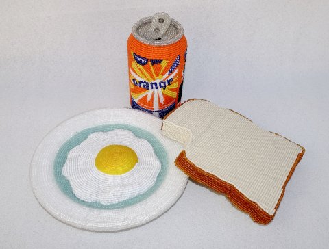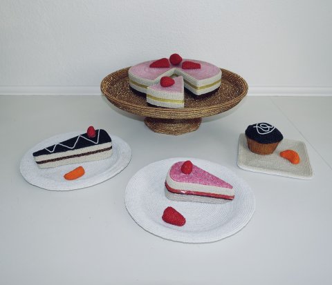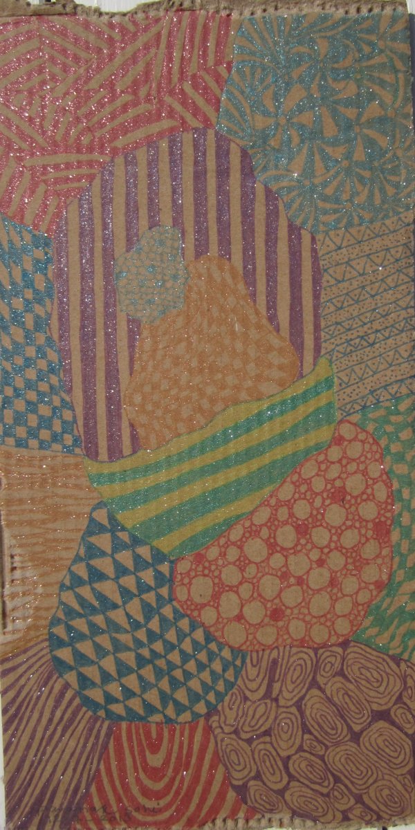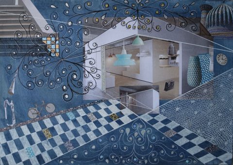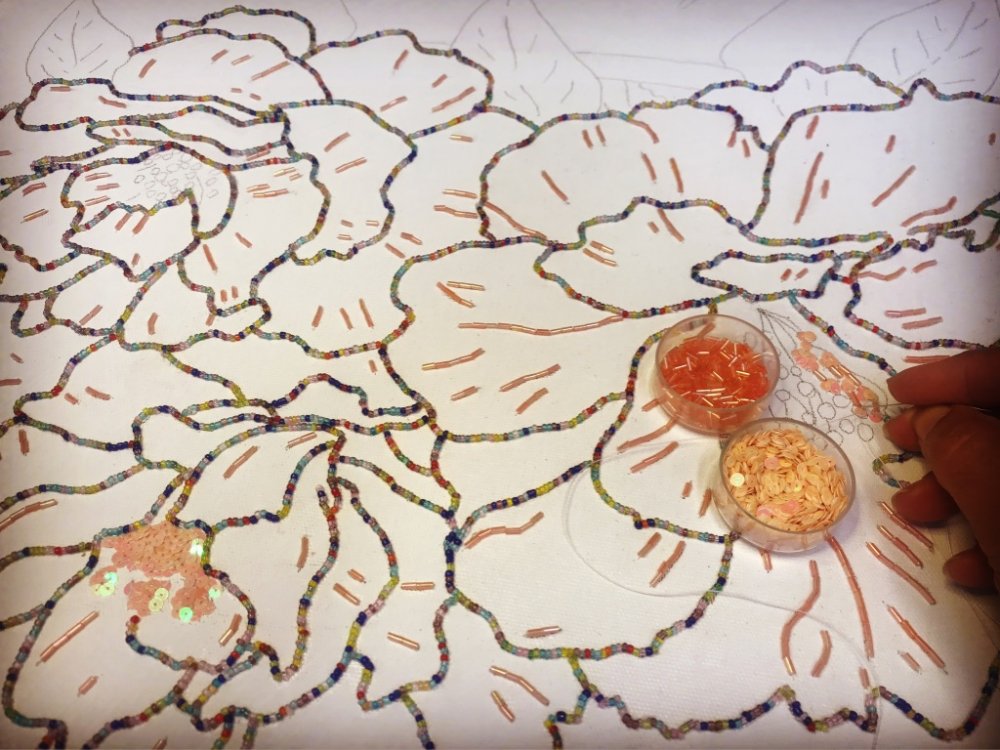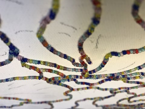 - Perlearbejder, Collager, broderier, tegninger