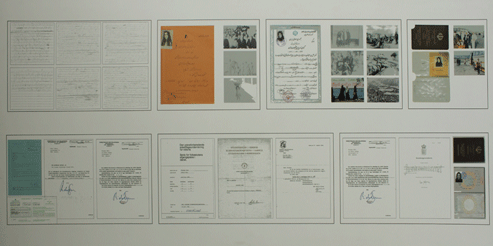 Alle dokumenter har den faktiske størrelse og farve. F. eks. kan der ses at min falsk pas er blevet klippet i det ene hjørne.